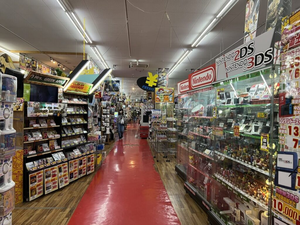 店内は品揃えが豊富でフィギュアやゲーム、古着やアウトドアグッズなども並ぶワンダーランド