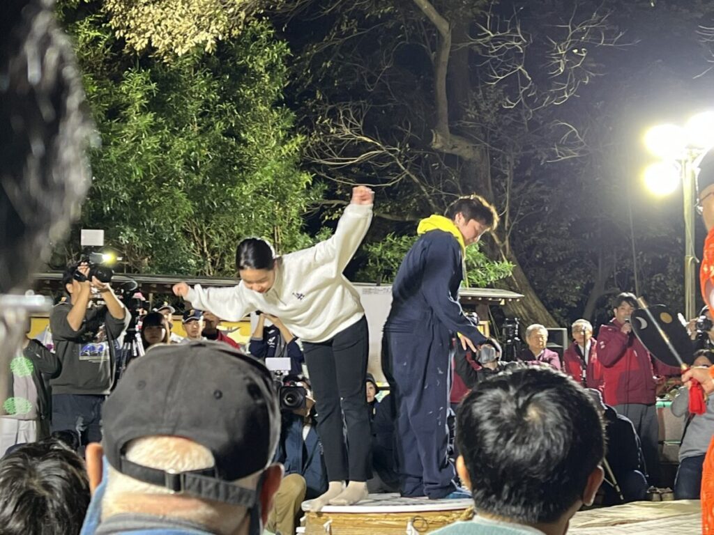 源頼朝と最初の妻、八重姫が音無神社で逢瀬を楽しんでいたという言い伝えが進化して、お尻をぶつけ合うユニークな尻相撲大会が行われる『尻つみ祭り』が開催されるようになりました。