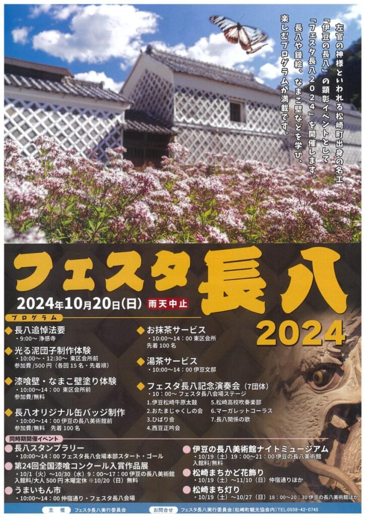 左官職人として全国的に知られる長八の功績をしのび、伝統技術の実演や体験、地元グルメなどが楽しめます。