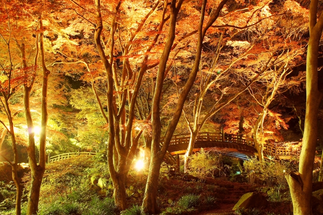 昼間は自然光に包まれた紅葉と散策が楽しめ、夕方以降は16:30~21:00のライトアップで幻想的な風景へと変わります。色鮮やかな葉が照らされる時間帯は特にフォトジェニックです。