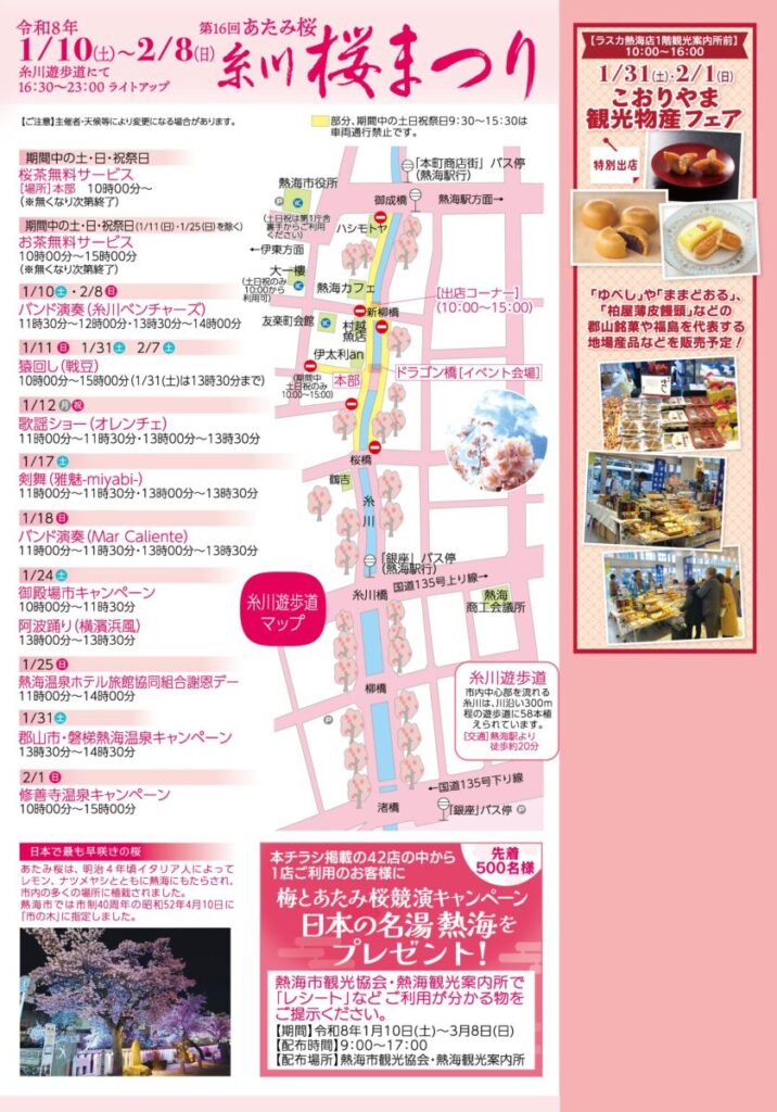 期間中の週末や祝日には、熱海芸妓連の演芸、歌謡ショー、大道芸、甘酒や梅茶のサービスなど、季節の催しが実施される日もあります。